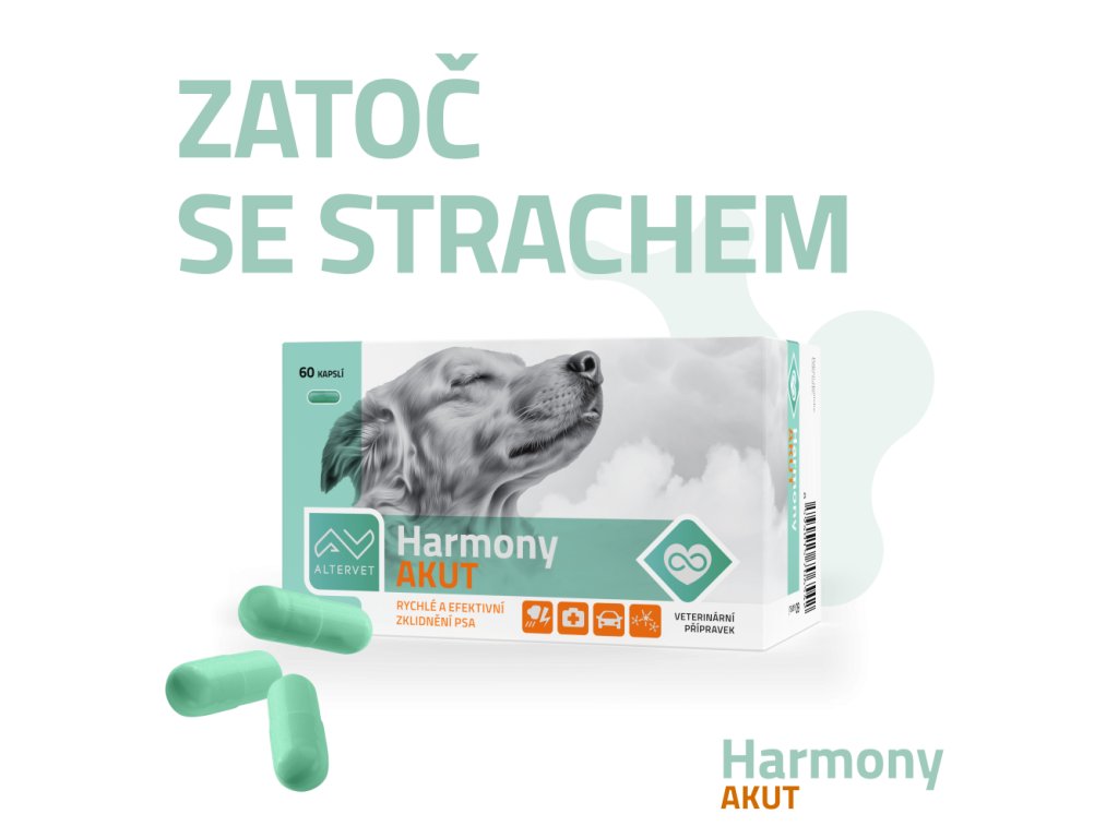 Harmony AKUT je přírodní doplněk stravy určený pro psy, kteří přecitlivěle reagují na okolní podněty a potřebují podporu ve stresových nebo krizových situacích – například při bouřkách, ohňostrojích, návštěvách veterináře nebo během cestování. Obsahuje pečlivě vybrané bylinné složky obohacené o vitamíny skupiny B, L-Theanin a melatonin. Tato kombinace napomáhá zklidnění mysli, uvolnění napětí a navrácení pocitu bezpečí.