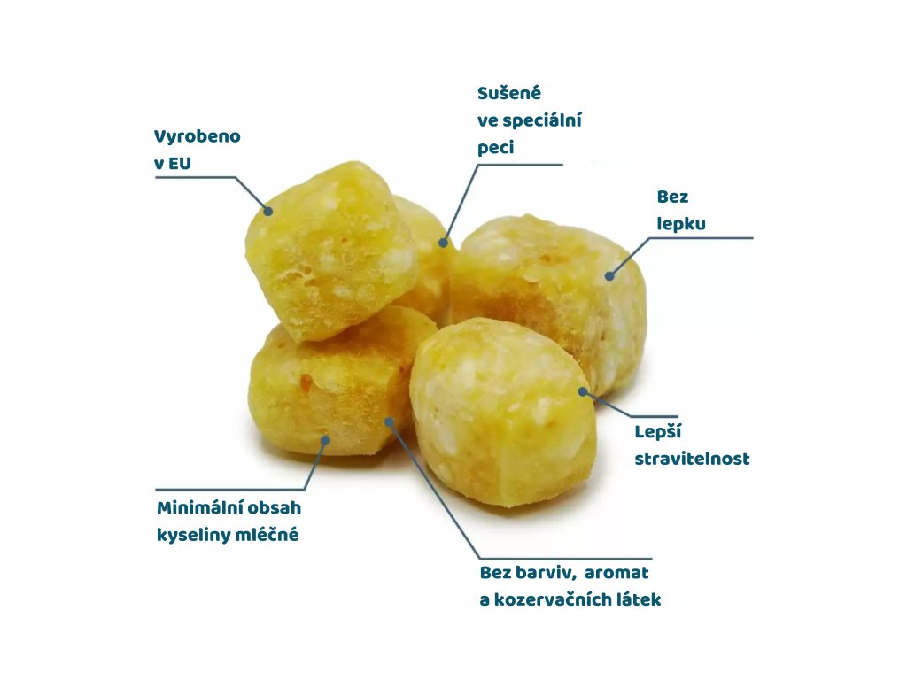 Legendární himalájská tyčka má novou podobu! Dog Cheese Popcorn je vyrobený ze stejného kvalitního mléka, jen v lehčí a křupavější formě. Díky speciálnímu pečení kousky puknou do lahodného popcornu, který psi milují – voňavý, chutný a snadno stravitelný.