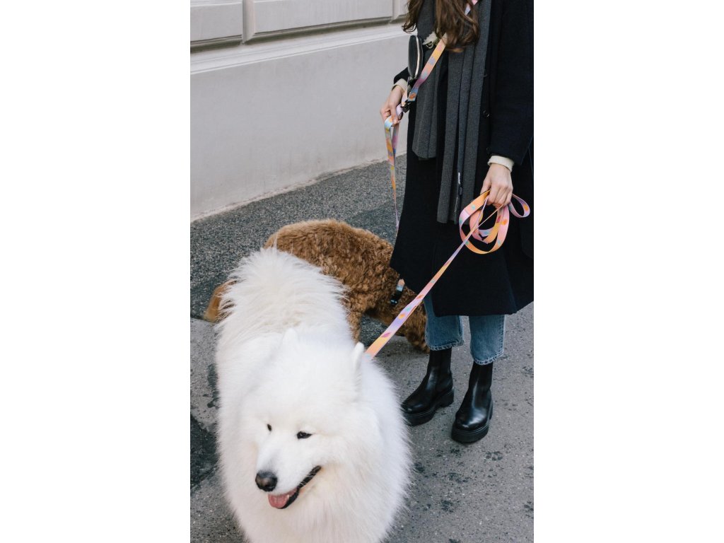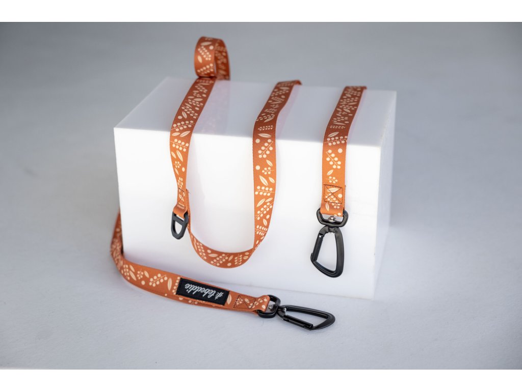 Poznámka k používání: Pro přehlednost na tomto místě uvádíme, že karabina, kterou připínáte k obojku/postroji, je ta s našitým logem Lebeddie.