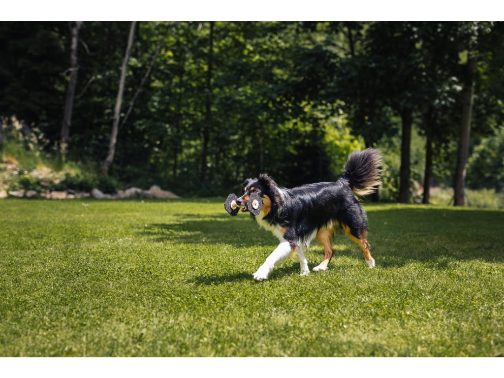 Praktická aportovací činka s gumovými bočnicemi. Odolná, tichá a ideální i pro trénink psa doma i venku.