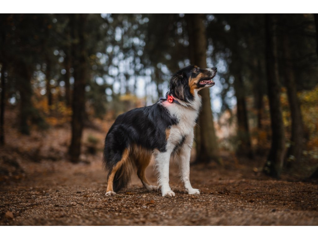 Nabízí dva režimy svícení – stálé světlo a blikání, čtyři výrazné barvy a výdrž až 48 hodin na jedno nabití. Dobití trvá pouhých 90 minut přes USB-A / USB-C kabel, takže světýlko je vždy připravené k použití. S hmotností jen 16 gramů o něm pes ani neví. Světýlko se dá pohodlně připnou jak na obojek, tak i postroj.