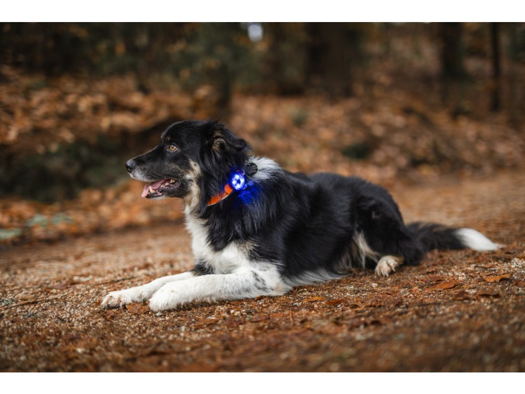 Dobíjecí LED světlo na obojek s odolností IPX7 zlepší viditelnost psa po setmění. Dva režimy, čtyři barvy, výdrž až 48 hodin, lehké a praktické.