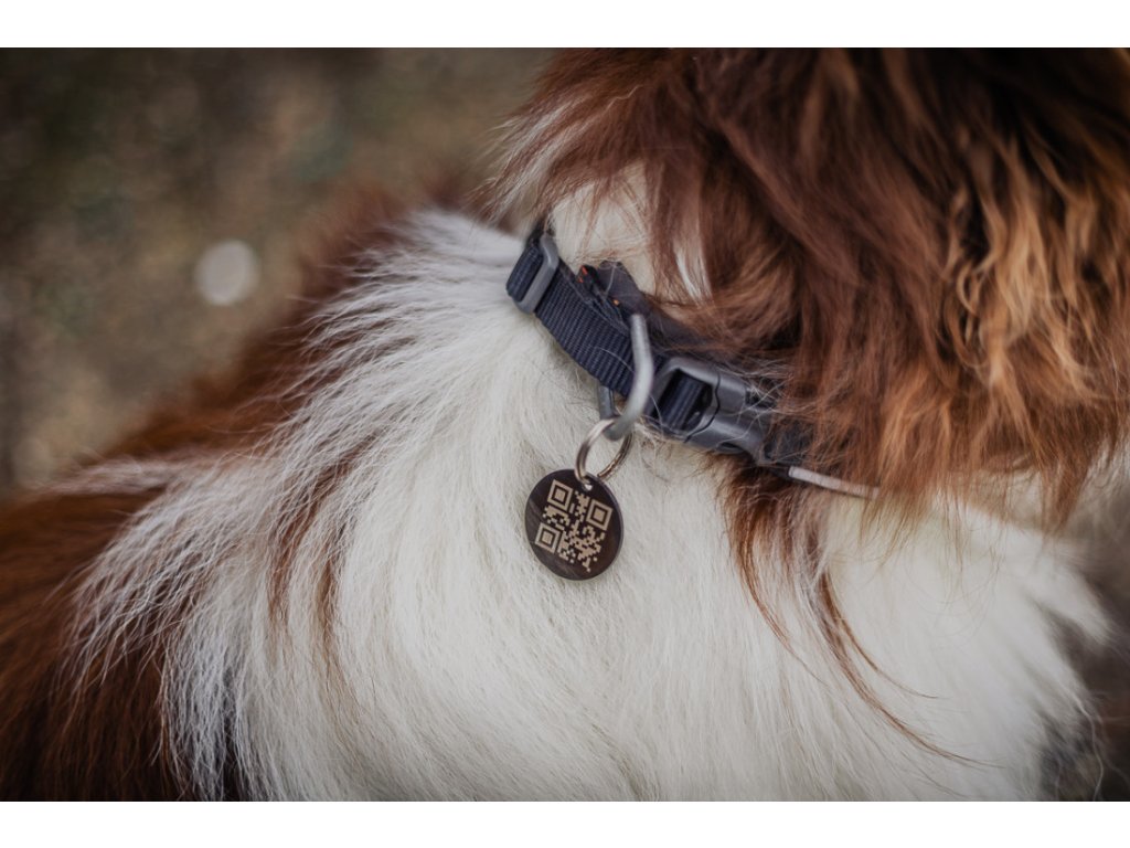 Jedná se o čistě QR známku s propojením na online profil psa.