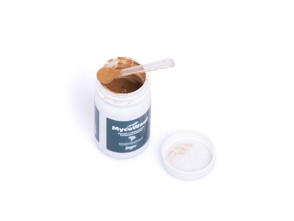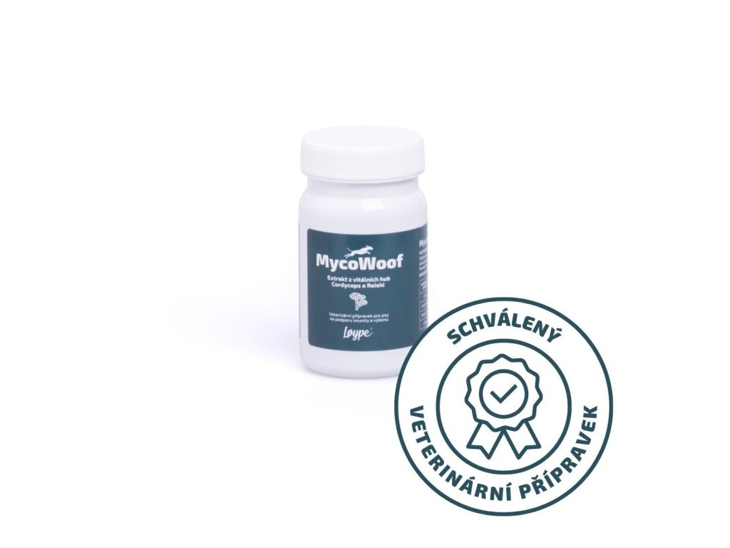 MycoWoof spojuje dvě silné léčivé houby – Reishi a Cordyceps – jejichž kombinace přináší psům podporu imunity, vyšší vitalitu a lepší adaptaci na zátěž. Cordyceps napomáhá tvorbě energie a regeneraci tkání, zatímco Reishi udržuje imunitní systém v rovnováze, tlumí zánětlivé procesy a podporuje celkové zklidnění organismu.