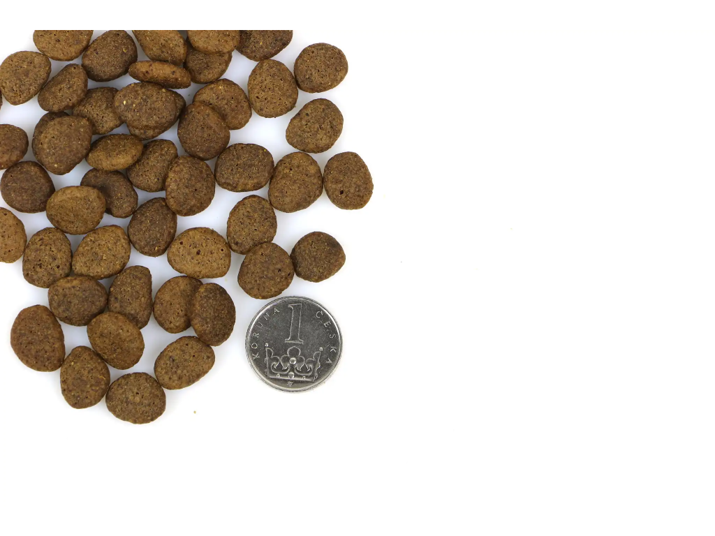 Hmotnost krmné dávky uvedená na obalu krmiva je orientační. Individuálně závisí na plemeni, věku, aktivitě, temperamentu, zátěži, genetických faktorech. Nepřekrmte svého psa v důsledku toho, že se necháte ovlivnit jeho chutí k jídlu a dychtivostí po granulích. Překrmení je nejčastější příčinou poruchy trávení.