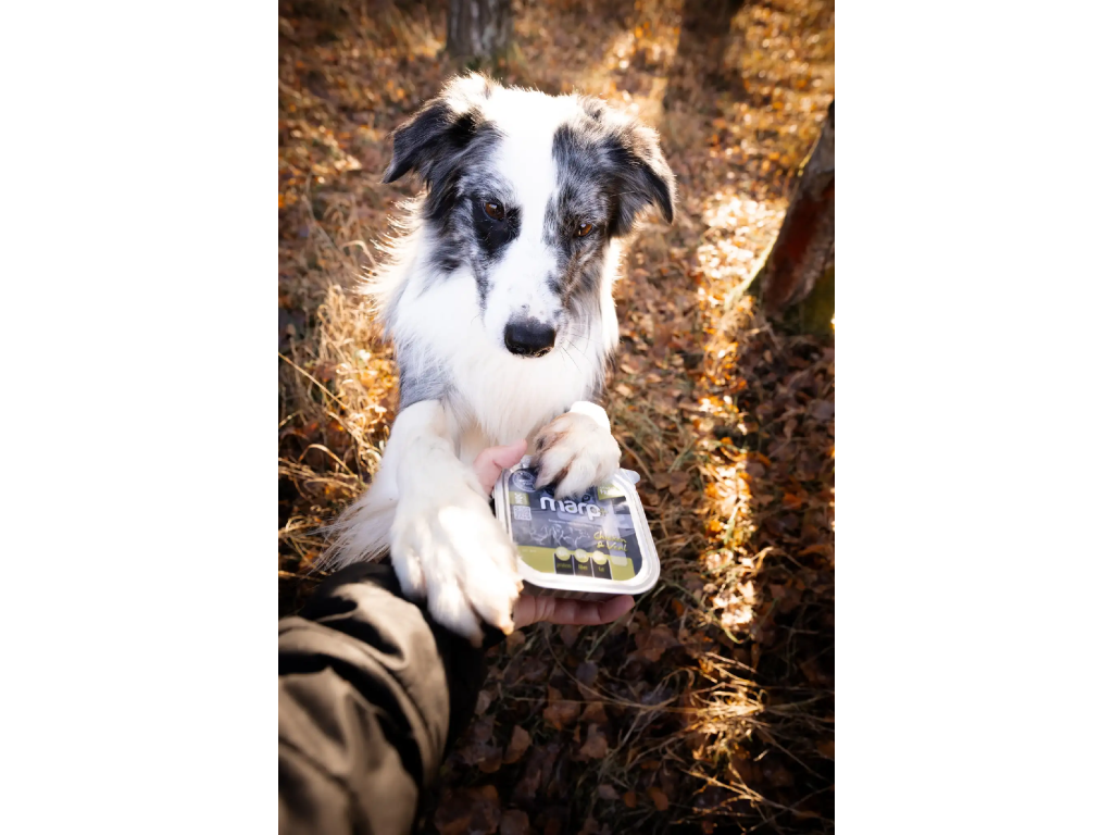 Marp Natural Plus Chicken & Veal je doplňkové krmivo pro psy ve formě jemné paštiky, postavené na dvou druzích masa – kuřecím a telecím. Receptura obsahuje pouze svalovinu, vnitřnosti, minerální látky a lněný olej. Žádné obiloviny, žádné konzervanty, žádné zbytečné přídavky – jen poctivé maso ze dvou živočišných zdrojů.