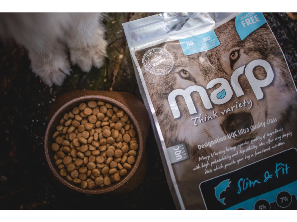 Marp Variety Slim and Fit je kompletní suché krmivo pro psy postavené na jednom druhu masa a snadno stravitelné rýži. Hlavní bílkovinou je bílá ryba – z čerstvé i sušené formy tvoří 31 % receptury. Receptura je sestavená bez lepku, bez kuřecího masa a tuku, bez brambor a bez syntetických konzervantů.
