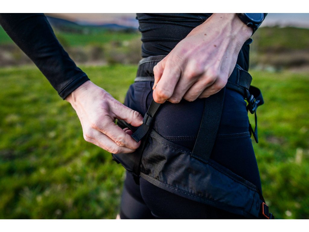 Opasek si lze snadno přizpůsobit podle postavy i aktuální potřeby. Nechybí reflexní prvky pro lepší viditelnost za šera a tmy, odolné spony pro bezpečné uchycení ani praktická kapsa na drobnosti, které chcete mít při běhu po ruce.