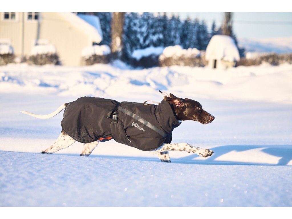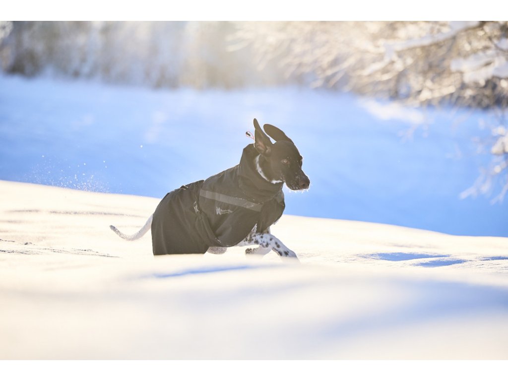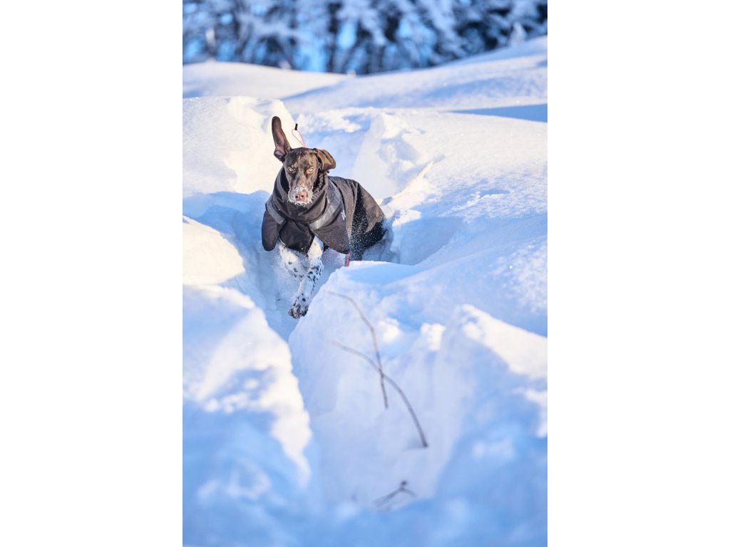Zateplená zimní bunda Trekking insulated dog jacket je ideální pro dlouhé zimní výlety do přírody. Díky ergonomickému střihu chrání velké svalové partie, aniž by omezovala přirozený pohyb psa.