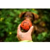 Míček má texturovaný povrch pro lepší úchop, jasnou oranžovou barvu pro snadné nalezení v trávě i šeru a odolnost až do 2 000 kg stisku. Díky přírodnímu složení neobsahuje BPA ani ftaláty a je bezpečný pro každodenní použití. Perfektní volba pro majitele, kteří hledají ekologický, trvanlivý a přitom šetrný míček pro svého psa.