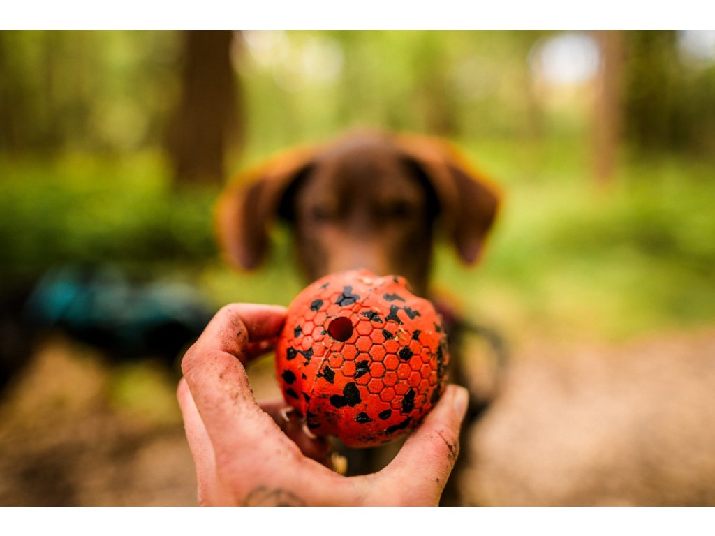 Míček má texturovaný povrch pro lepší úchop, jasnou oranžovou barvu pro snadné nalezení v trávě i šeru a odolnost až do 2 000 kg stisku. Díky přírodnímu složení neobsahuje BPA ani ftaláty a je bezpečný pro každodenní použití. Perfektní volba pro majitele, kteří hledají ekologický, trvanlivý a přitom šetrný míček pro svého psa.
