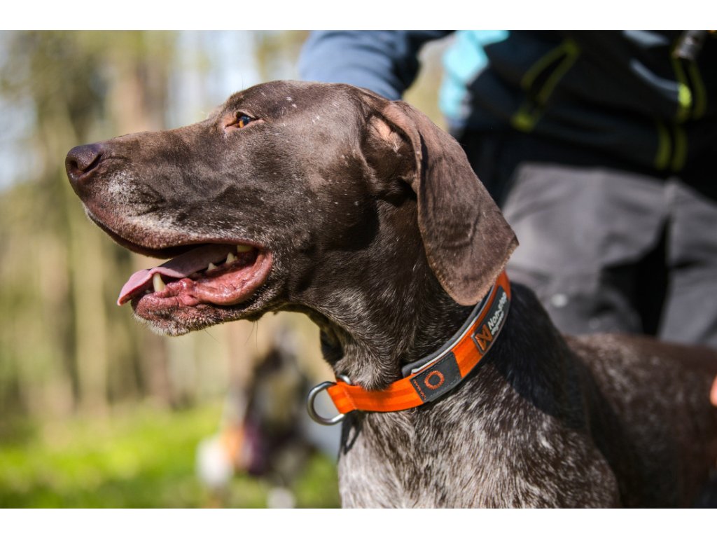 Obojek Cruise je k dispozici v oranžové a černé barvě ve velikostech XXS–XXXL.