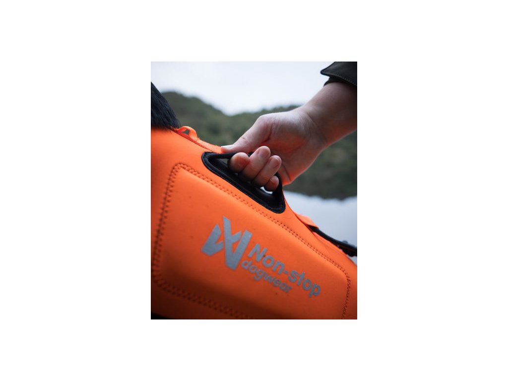 Ergonomický střih a výřezy v oblasti ramen zachovávají plný rozsah pohybu při běhu i plavání. Integrované pěnové panely poskytují lehkou vztlakovou funkci, aniž by omezovaly pohyb na souši. Nízkoprofilové madlo na hřbetě slouží pro bezpečné nadzvednutí psa například do lodi a zároveň se nezachytává o větve.
