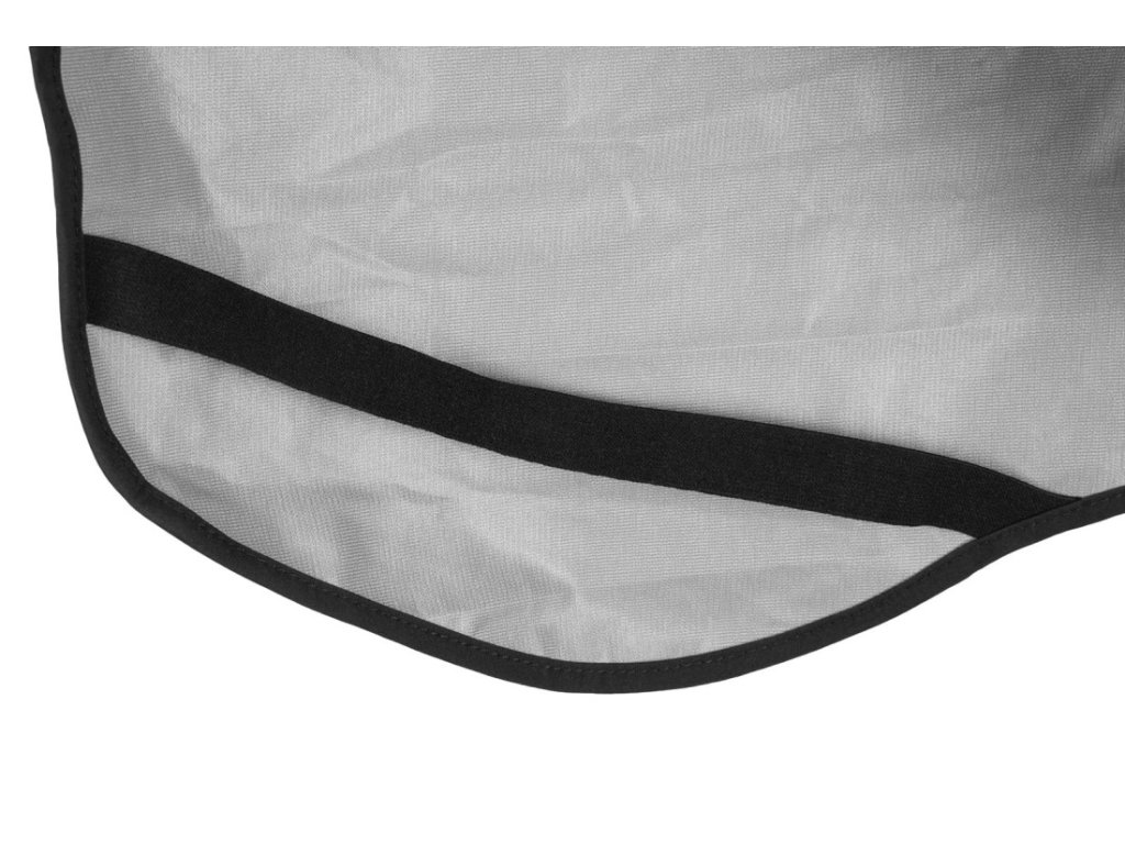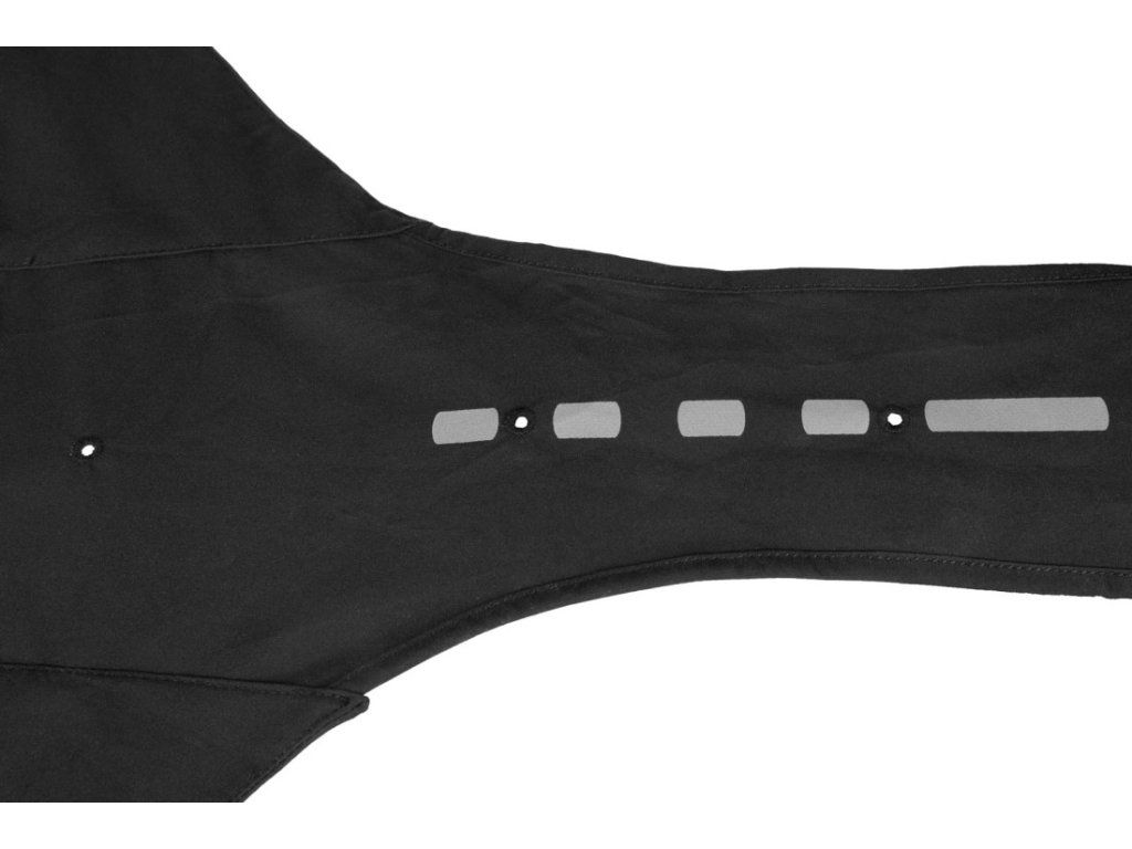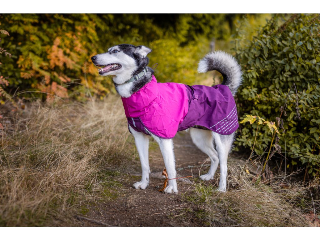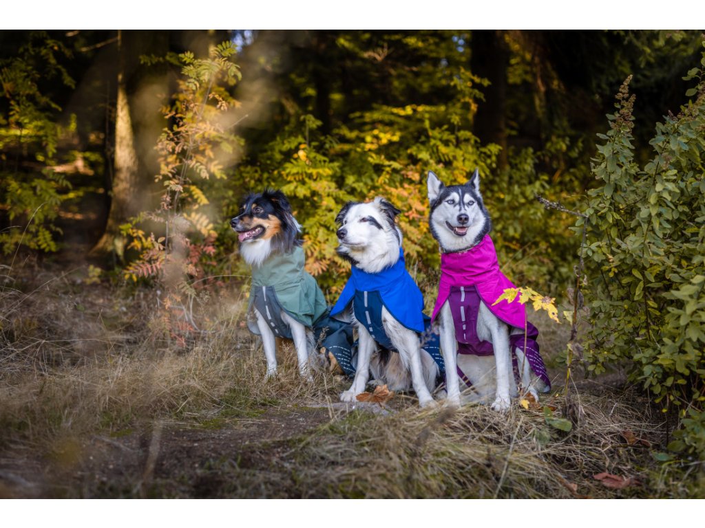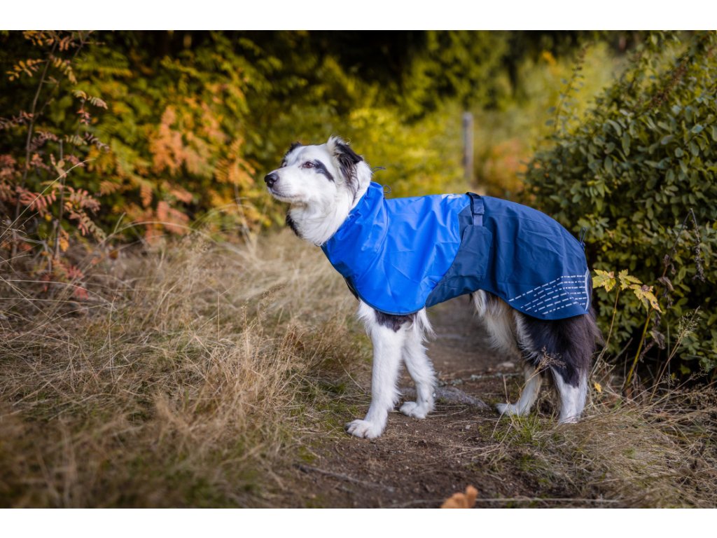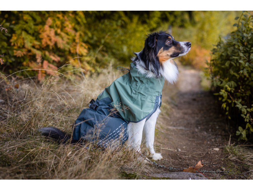 Pro majitele, kteří chodí na výlety, jsou v pláštěnce otvory pro krátký postroj i obojek. Reflexní prvky na hrudníku a zadních částech pláštěnky zvyšují viditelnost psa při špatných světelných podmínkách. Gumičky na spodní části zajišťují, že pláštěnka pevně drží na místě i při větru, a stahovací gumičky na krku a zádech umožňují lepší přizpůsobení tvaru tělu psa.
