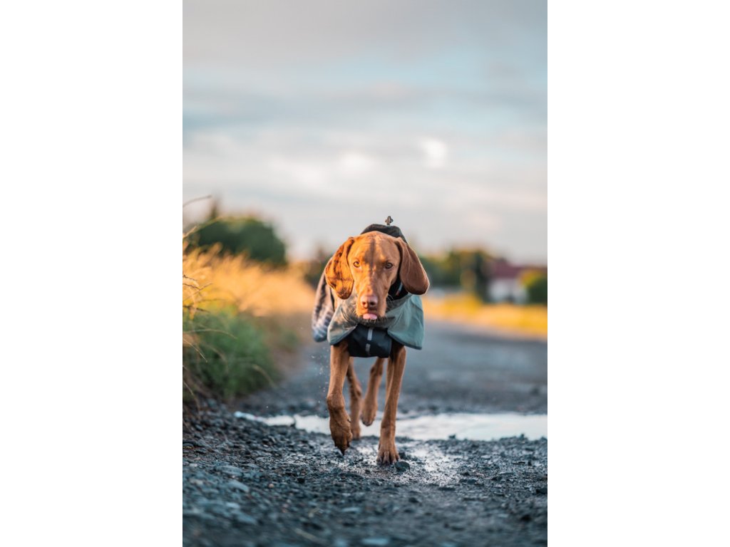 I když pláštěnka pokrývá velkou část těla, její prodyšný materiál zajišťuje, že se pes nezapaří. Obleček je navíc vybaven dvěma drenážními otvory na hrudi pro efektivní odvod vlhkosti. Je navržen tak, aby umožnil psovi volný pohyb i přes zakrytá ramena a stehna, což ho činí ideálním pro sportovní aktivity.