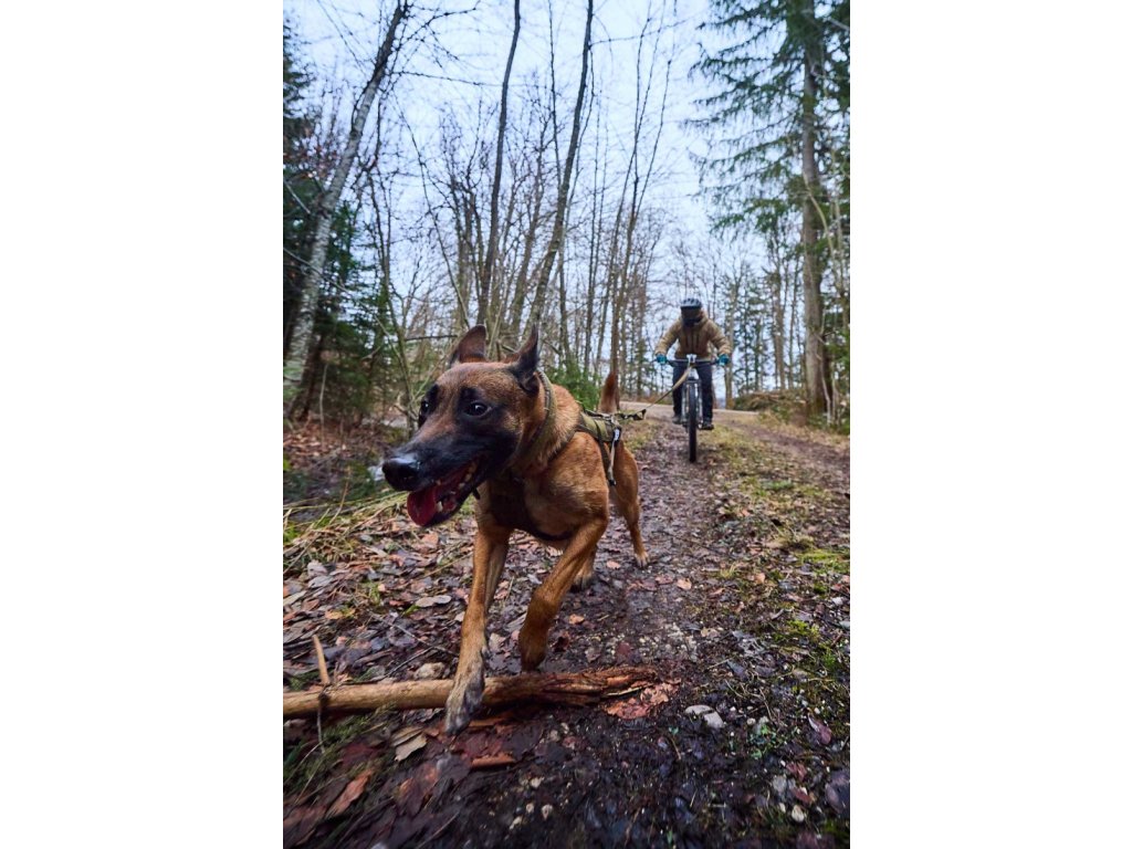 Dlouhý postroj Freemotion WD z edice Working dog vznikl pro psy, kteří táhnou naplno — od canicrossu, bikejöringu či skijöringu až po služební nasazení. Hrudní díl ve tvaru Y nechává dýchací cesty volné a tah se díky chytré konstrukci rozkládá přes zádové svaly až ke kořeni ocasu, takže páteř zůstává odlehčená a pohyb psa přirozený.