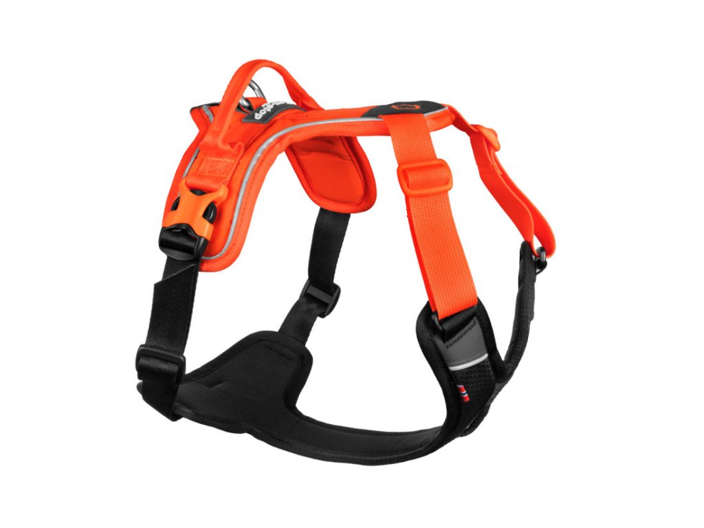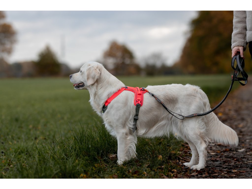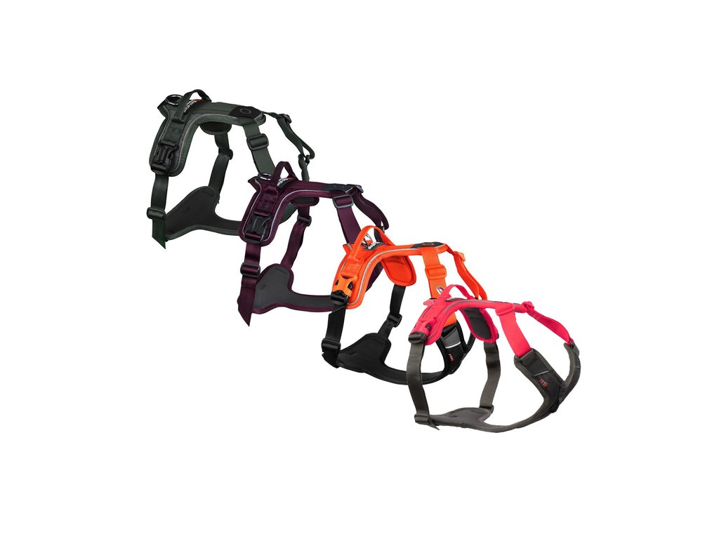 Postroj je vyroben z materiálu, který neabsorbuje vodu, což zajišťuje pohodlí za každého počasí. Nasazování je velmi jednoduché, stačí jej přetáhnout přes hlavu a díky sponám na obou stranách se snadno přizpůsobí. Plná nastavitelnost v oblasti krku a hrudníku zaručuje, že padne každému psovi. Postroj má tři místa pro připevnění vodítka a na hřbetu psa je umístěno praktické poutko pro snadný úchop. Na kritických místech je vyztužen Hypalonem, který zvyšuje jeho odolnost. Reflexní prvky navíc zajišťují lepší viditelnost ve zhoršených světelných podmínkách.