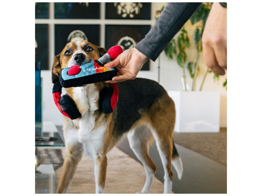 Plyšový pískací joystick z retro kolekce 80s Classics. Ručně vyrobený z recyklovaných materiálů, odolný díky zesílenému šití. Pro psy, co milují klasiku, i když se narodili o pár desetiletí později.