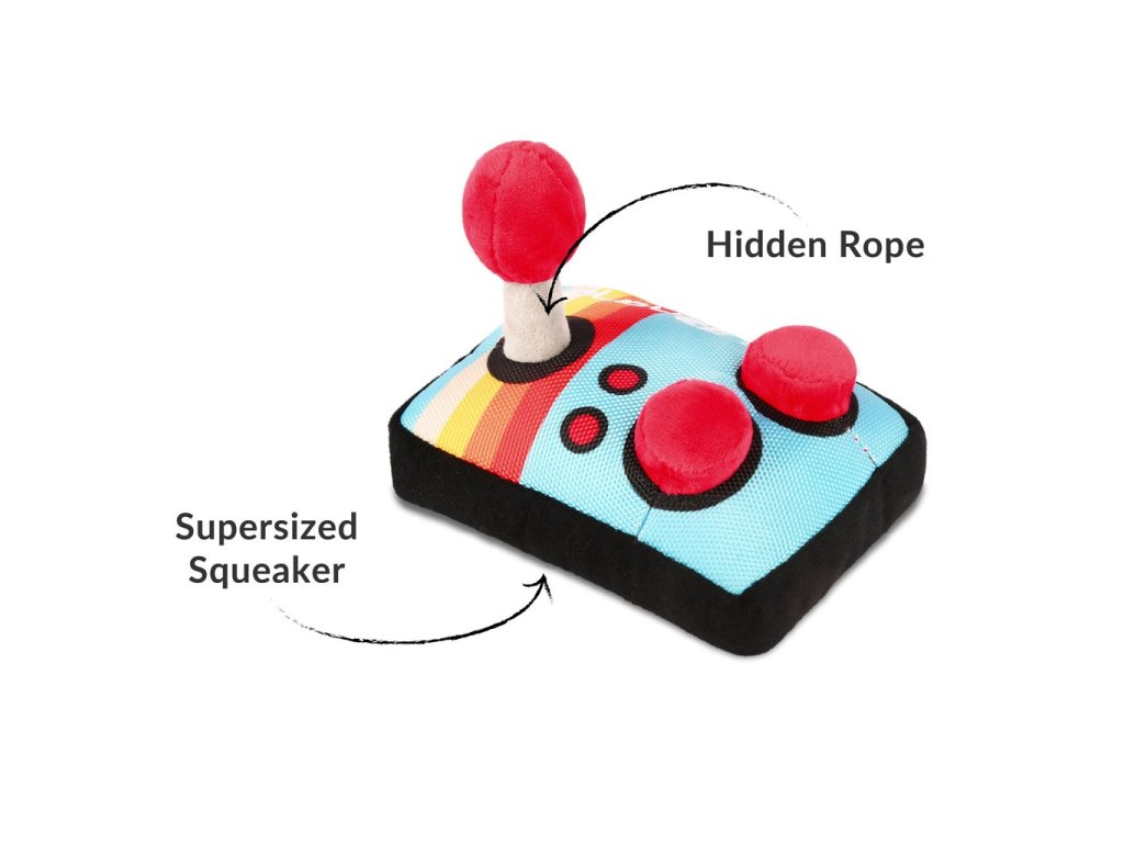 Vzpomínáte na osmdesátky? Tento plyšový joystick je tu pro všechny, kdo vyrostli na Atari a teď mají doma čtyřnohého parťáka. Hračka je ručně vyráběná z recyklovaných plastových lahví a díky dvouvrstvému potahu a zesílenému šití vydrží i intenzivní hraní.