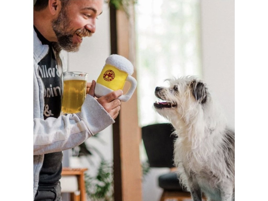 Po dlouhém dni si každý zaslouží dobré pivo. Váš pes není výjimkou – jen to jeho je plyšové, pískací a vydrží víc než jednu rundu.