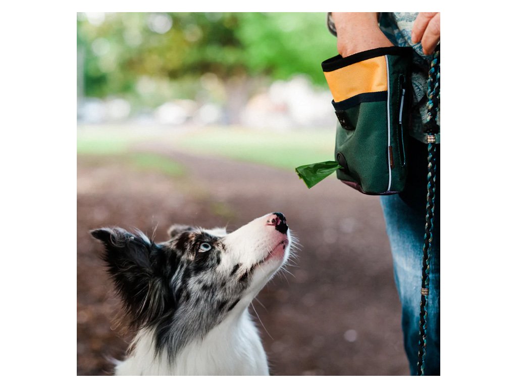 2 kapsy a speciální místo na sáčky – prostorný vnitřek na pamlsky + diskrétní zadní kapsa na zip na peníze či kartu