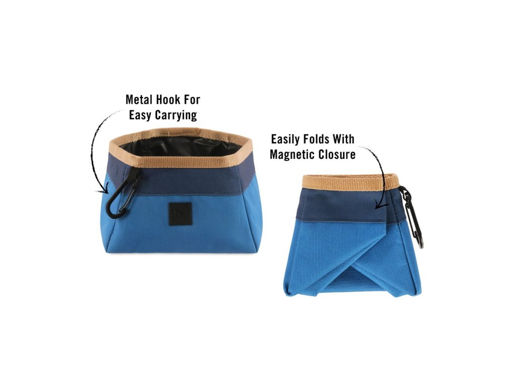 Praktická a stylová miska, která by neměla chybět při žádném výletu, kempování či cestování se psem. Vyrobena z netoxických a odolných materiálů, bezpečných i podle norem pro dětské výrobky. Díky své lehkosti a praktické karabině ji snadno připnete na pásek nebo batoh, takže ji budete mít vždy po ruce. Magnety zajišťují, že si miska udrží kompaktní tvar, a přesto pojme více než 2 litry vody. Hodí se na cestování, kempování i delší výlety, kde je důležité mít pro psa spolehlivý zdroj vody.
