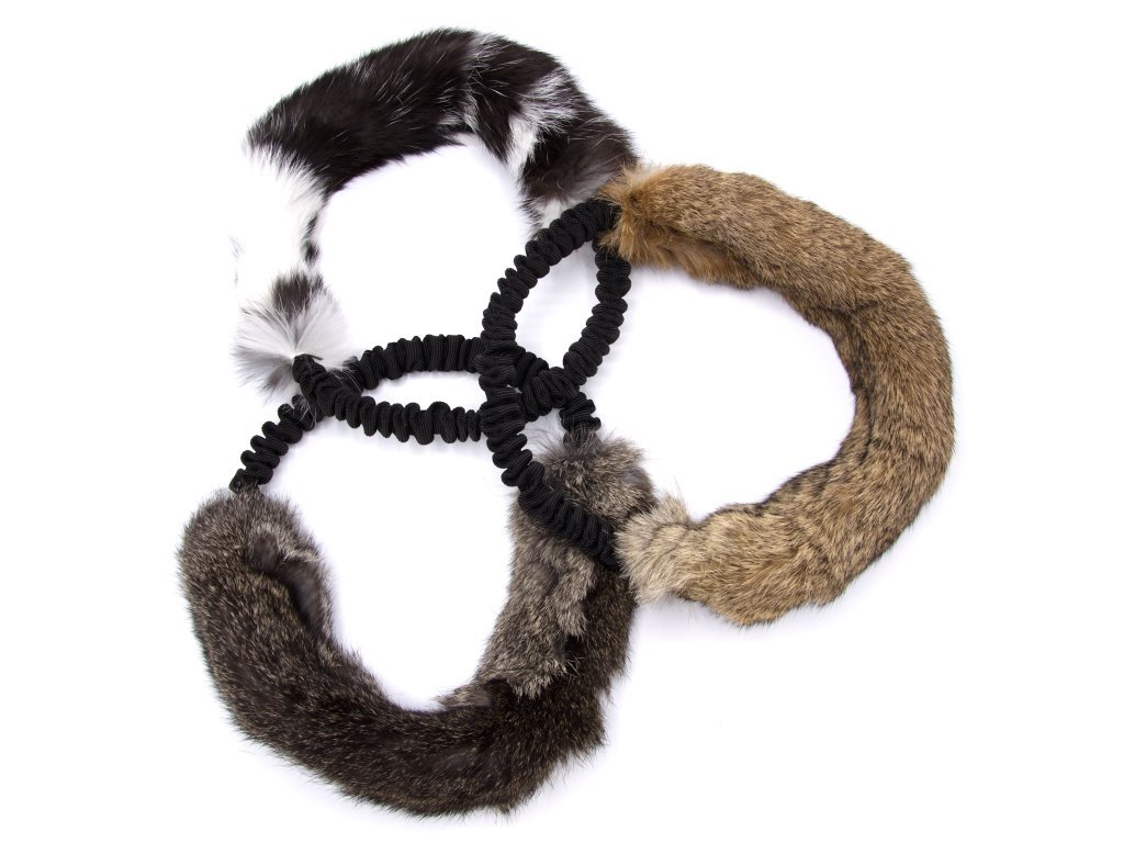 Motivační hračka pro psy s králičí kožešinou pevně přišitou po celé délce k popruhu a praktickým pružným úchytem. Pravá králičí kožešina v psech probouzí přirozené instinkty.