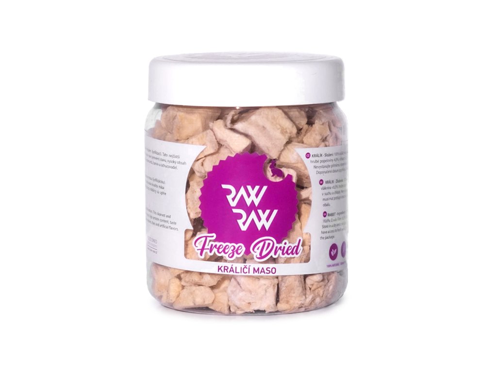 Králičí maso v té nejčistší podobě. Mrazem sušené, lehce stravitelné a výživné pamlsky. Skvělá volba i pro citlivé psy.