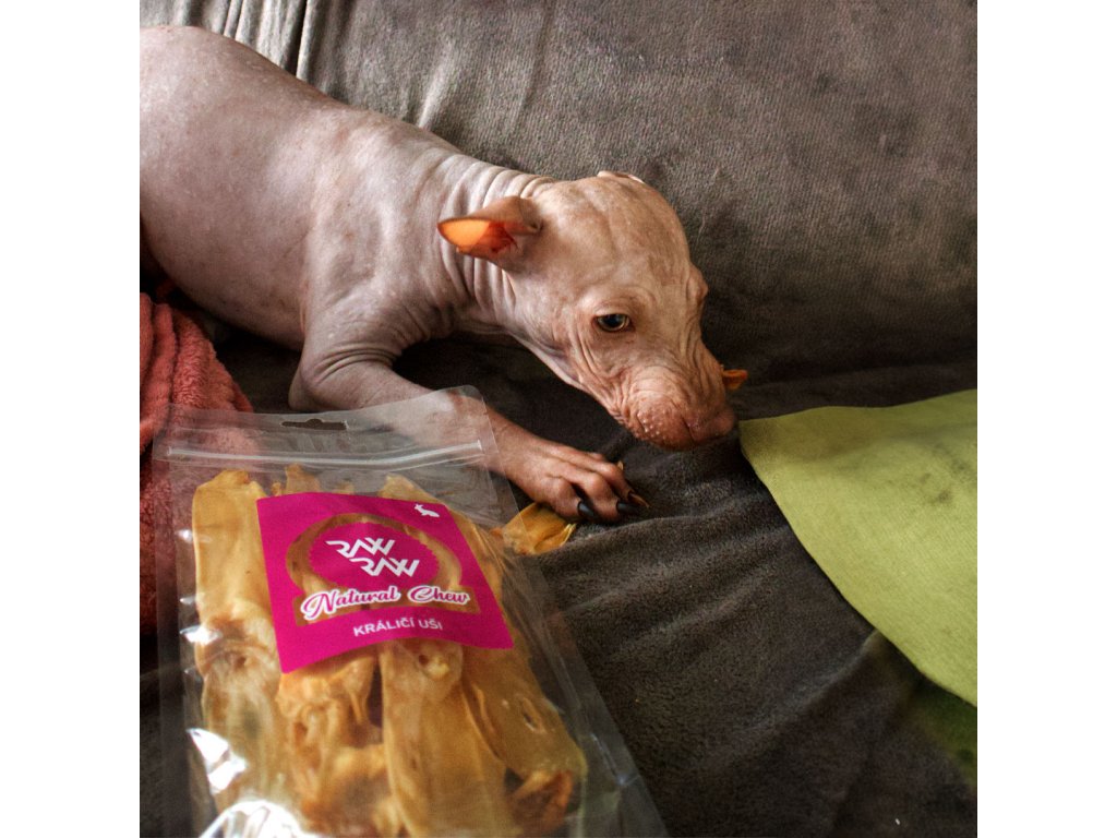 Králičí uši bez srsti jsou jemné, křupavé a snadno stravitelné. Jsou vhodné pro psy i kočky, včetně jedinců s citlivým zažíváním nebo potravinovými alergiemi. Při žvýkání přirozeně čistí zuby a masírují dásně, čímž podporují ústní hygienu.
