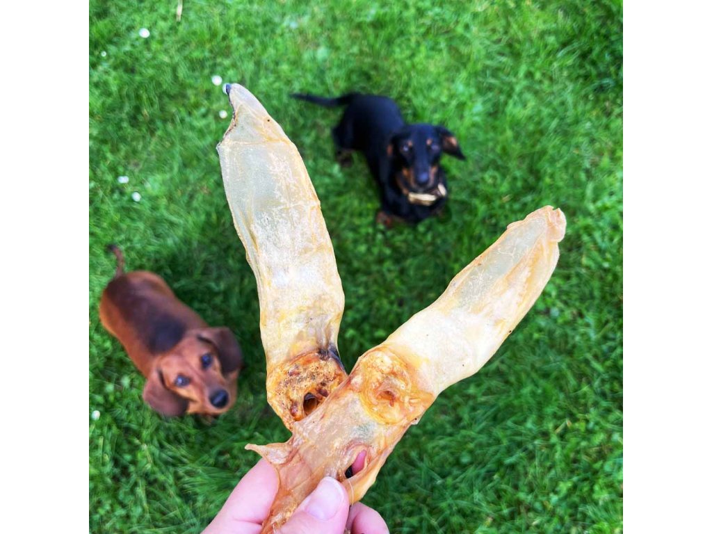 Velikost pamlsků: Králičí uši bez srsti s chrupavkou o délce cca 15cm.