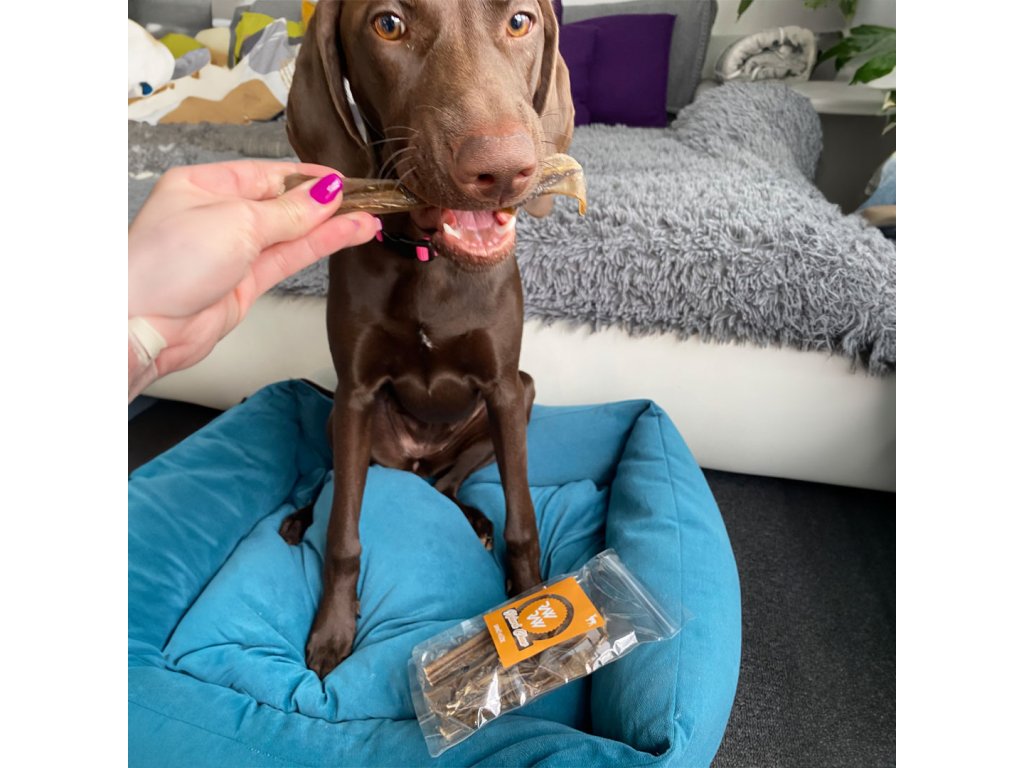 Balení: 100 g (proužky kůže o délce cca 15 cm).