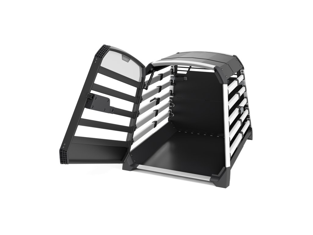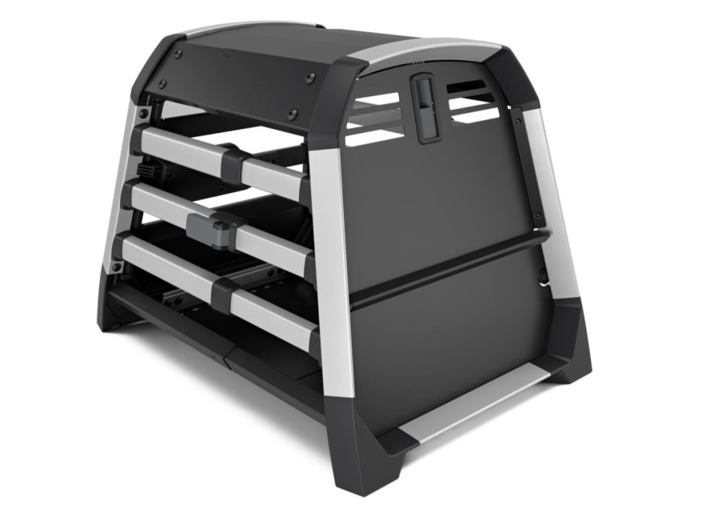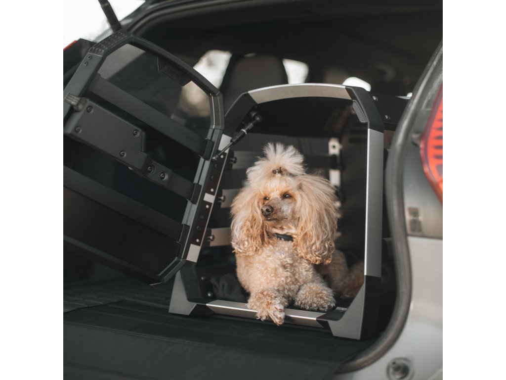 Špičková crash-testovaná klec pro psy, navržená pro maximální ochranu, tichou jízdu a komfort díky inovativní deformační zóně a chytrým detailům.