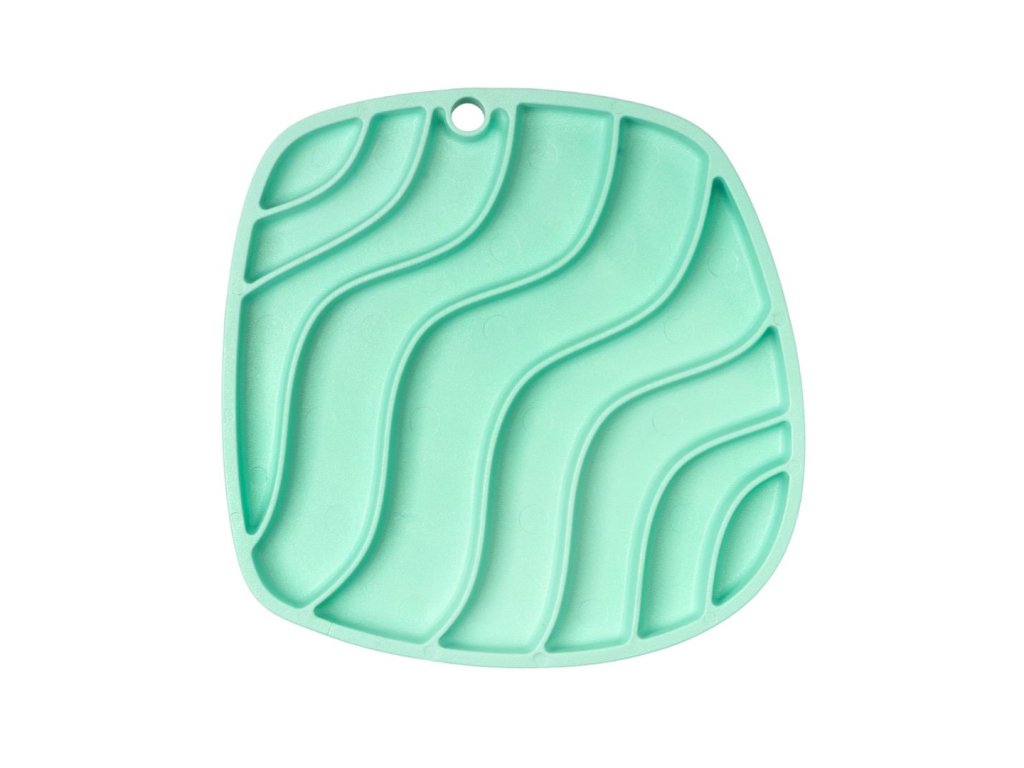 Inovativní oboustranná lízací podložka slouží také jako protihltací, zpomalovací miska. Jedna strana má hlubší drážky, zatímco druhá strana mělké, ideální pro olizování.