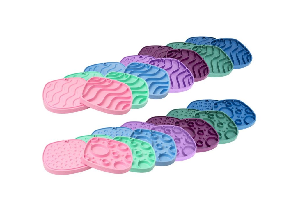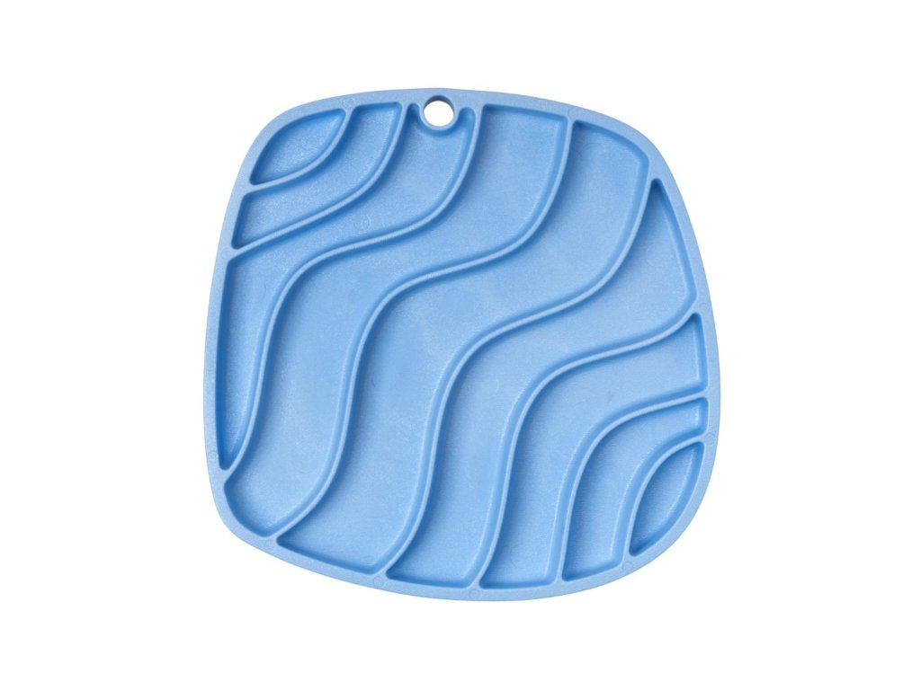 Inovativní oboustranná lízací podložka slouží také jako protihltací, zpomalovací miska. Jedna strana má hlubší drážky, zatímco druhá strana mělké, ideální pro olizování.