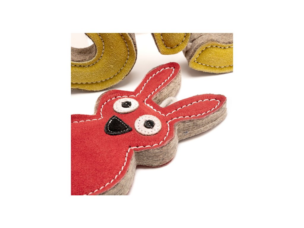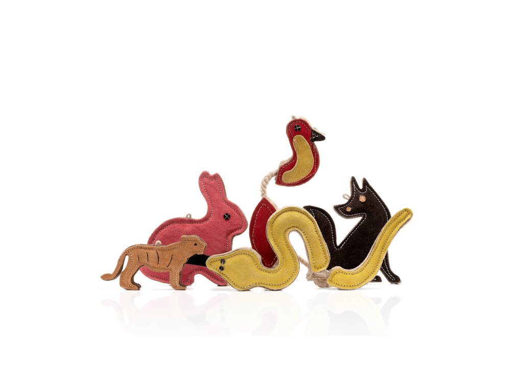 Celá hračka je pečlivě prošitá pevnou nití, která zpevňuje všechny spoje a prodlužuje životnost i při intenzivním žvýkání a tahání. K psím zubům a dásním je přitom šetrná a neodírá je. Přirozená vůně kůže spolehlivě zaujme každého psa – připomíná pach kořisti a okamžitě v něm probudí lovecký instinkt a chuť do hry.